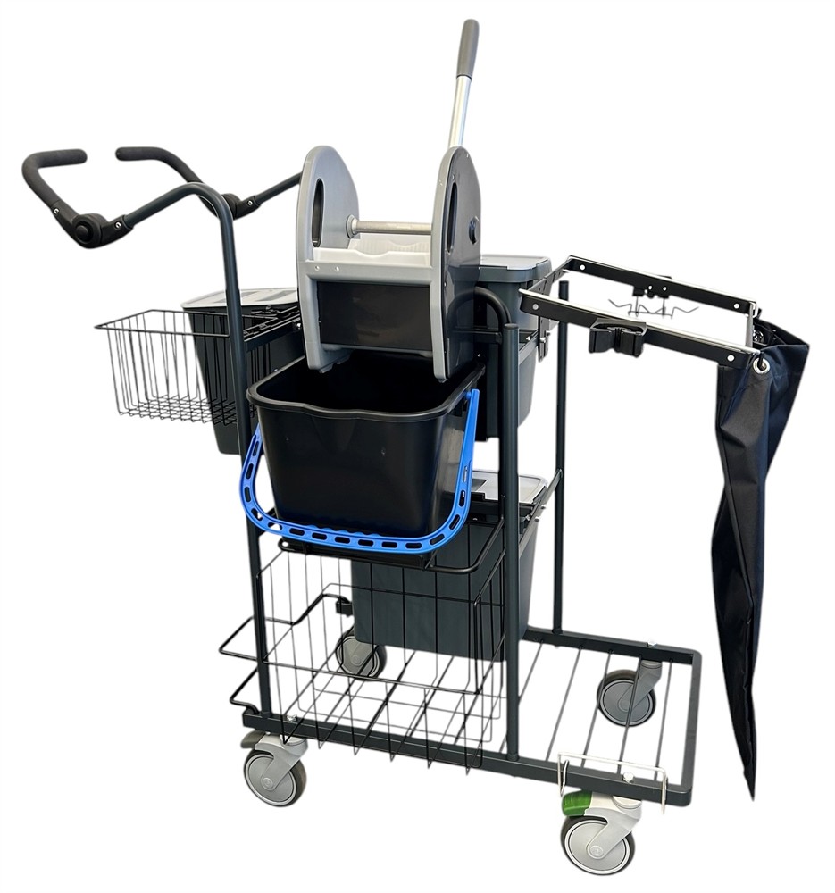 Activa 747 serien är tillverkad i Sverige med återvunnet stål och konstruerad för hållbarhet och funktion in i minsta detalj. Med detta funktionspaket får du en funktionell utrustning för traditionell städning där du preparerar städmaterialet direkt på vagnen. Vagnen passar ett mellanstort till stort städområde. Den kraftfulla svabbpressen med medföljande 18Lhink är till större delen av återvunnet material. Vagnen är utrustad med följande funktioner: Duk/mopp hink 12L med snabblock. Liten materialkorg. Moppress med 18Lhink. Mopp/material back 25Lmed snabblock x 2. Materialkorg XL ca 35L. Tvättpåse 33L. Totalt 2 redskapshållare Pro med stativstöd. Smart hållare för sopsetet. Tröskelklättrare. (extra skafthållare går att köpa till).