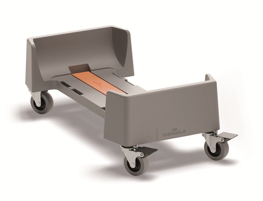 Vagn för DURABIN® 60 – tillverkad av 80% återvunnen polypropylen (ej hjulen). Lämplig för inomhusbruk och övertäckta utomhusytor på t.ex. lager, produktion och matsalar. Utrustad med fyra svängbara hjul (två med broms), kan kopplas ihop med andra DURABIN®-vagnar (max 4 i rad) och har en lastkapacitet på upp till 80 kg.