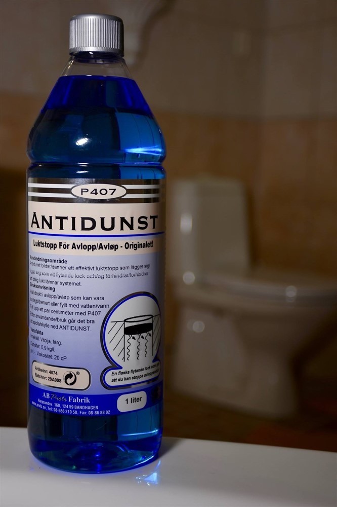 P407 Antidunst är ett luktstopp för avloppssystem som bildar ett flytande lock och effektivt förhindrar dålig lukt från att spridas. Produkten appliceras direkt i avloppet, oavsett om det är torrlagt eller vattenfyllt, och fylls på några centimeter. Efter användning kan Antidunst enkelt spolas ner. Den innehåller hydrerad, ren olja och färg, har en densitet på 0,9 kg/l och en viskositet på 20 cP.